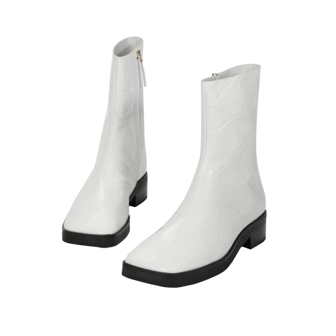 Zip Ankle Boots - Croc-Embossed White