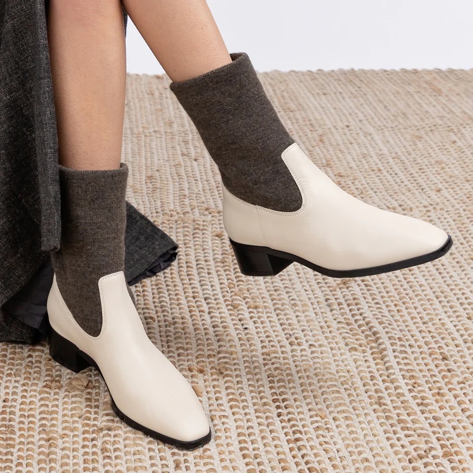 Upper: Sensuous smooth cow leather with elastic cloth Inner: Supple goatskin and suede Insole: Goatskin with cushioning Outsole: Anti-slip rubber