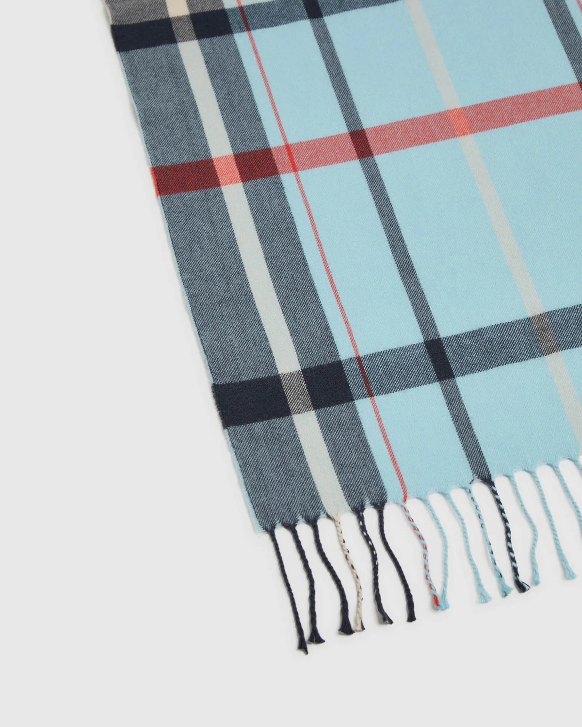 Rug up in style this winter with the scarf. This dapper scarf is crafted from a wool, cotton, and silk blend in a woven style. It is a regular size and features a check pattern with twisted fringe ends.